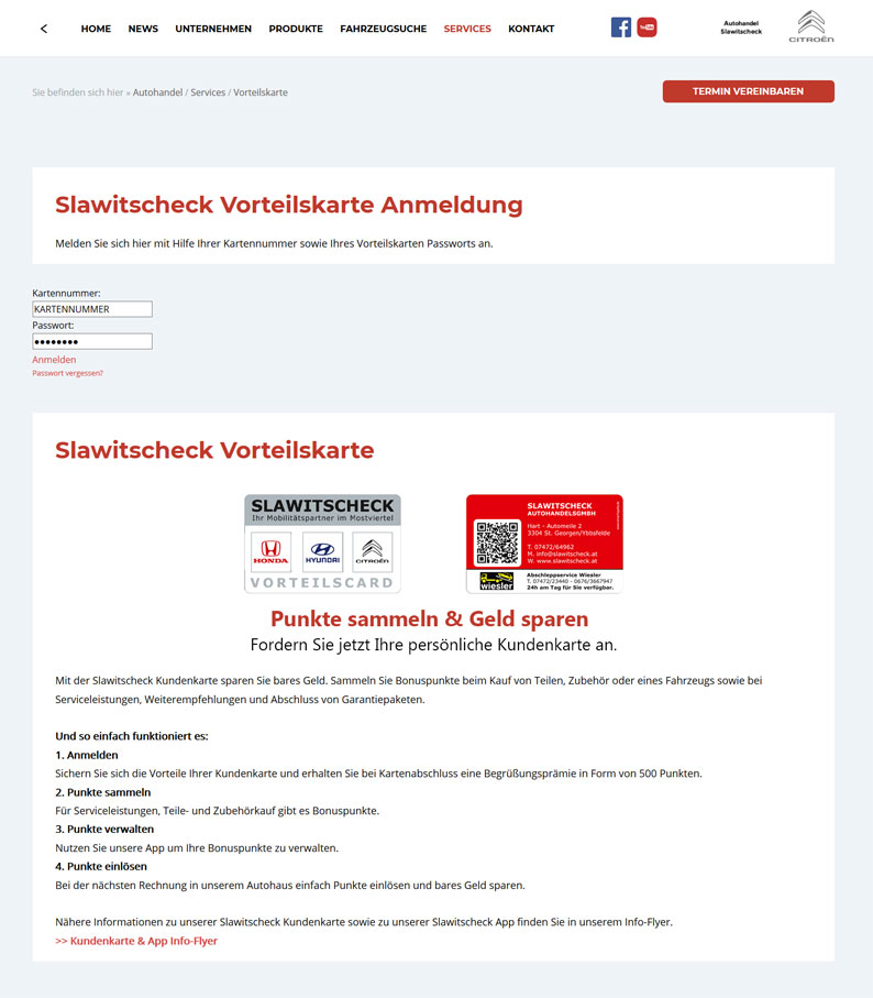 Mit der Kundenkarte beim Autohandel Slawitscheck werden die Kunden für Ihre Treue belohnt.