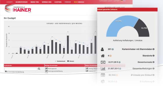 Jedes System erhält sein eigenes Portal, in das sich der Kartennutzer einloggen kann, um seinen aktuellen „Kontostand“ bei ihnen abzurufen. Sie als Betreiber haben zusätzlich über Reports und Grafiken alles im Blick: