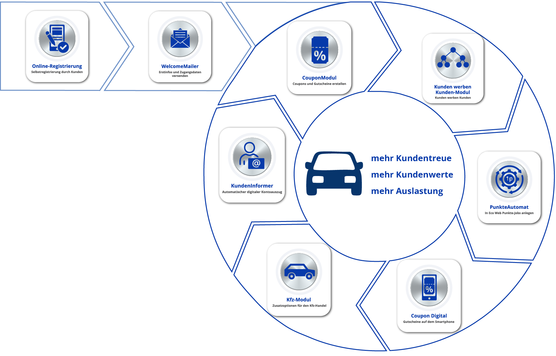 Der KFZ-Handel genauso faszinierend wie anspruchsvoll. Die Kaufprozesse sind anspruchsvoll wie in kaum einer anderen Branche. In über 300 Projekten haben die EcoSysteme gelernt clevere Bonuskonzeptionen anzubieten im Feld